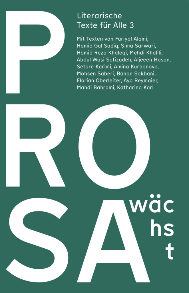 Published by Selina Shirin Stritzel, Katharina Pressl, Muhammet Ali Baş, Luca Kieser. Mit Texten von Fariyal Alami, Hamid Gul Sadiq, Sima Sarwari, Hamid Reza Khaleqi, Mehdi Khalili, Abdul Wasi Safizadeh, Aljeen Hasan, Setare Karimi, Amina Kurbanova, Mohsen Saberi, Banan Sakbani, Florian Oberleiter, Aya Reymaier, Mahdi Bahrami, Katharina Karl
